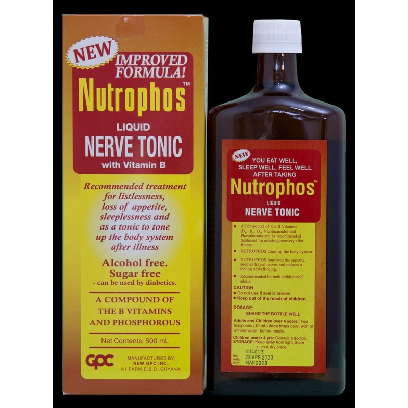 NUTROPHOS Liquid Nerve Tonic with Vitamin B 16.9oz/500ml (Pack of 2)