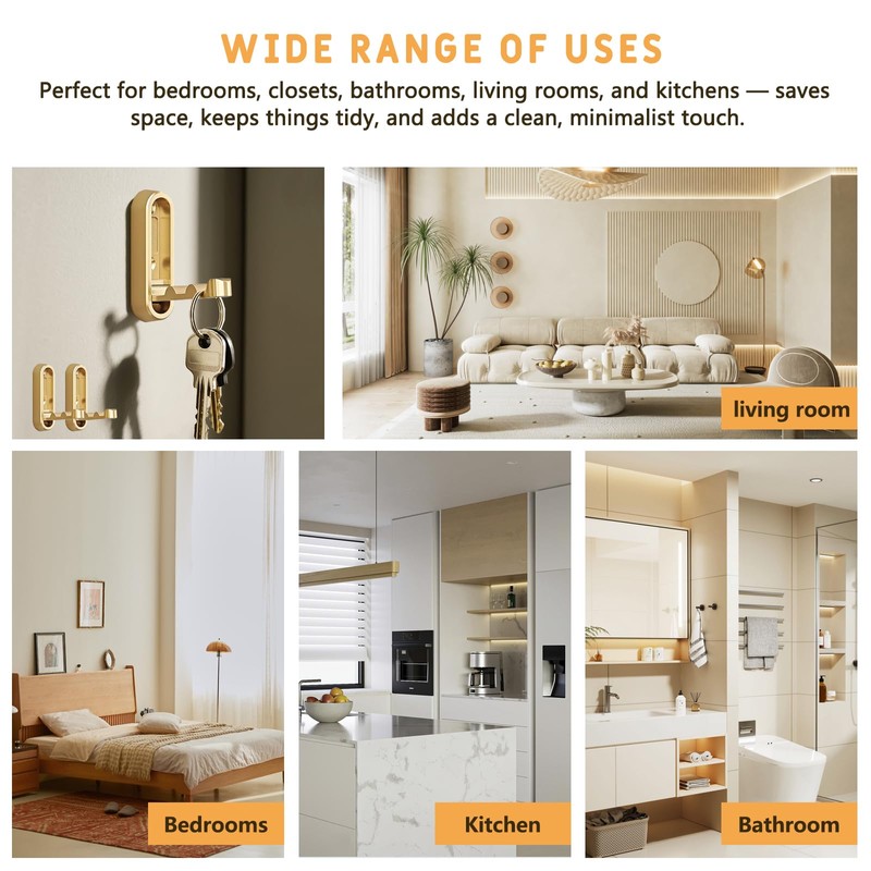 - Versatile Use Throughout Your Home: Stylish yet practical, these gold wall hooks are great for entryways, kitchens, closets, and bedrooms — keeping your space organized and looking elegant.