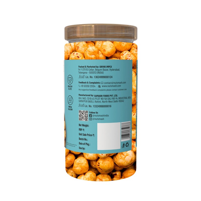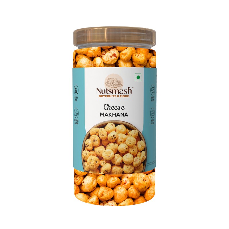 Nutsmash Roasted Flavoured Makhana Crunchy & Healthy Fox Nuts Protein & Fiber-Rich Snack Cheese Flavour Puffed Kernels Fresh Fox Nuts, Ready To Eat Roasted Flavored Makhana Mix Lotus Seeds Savory