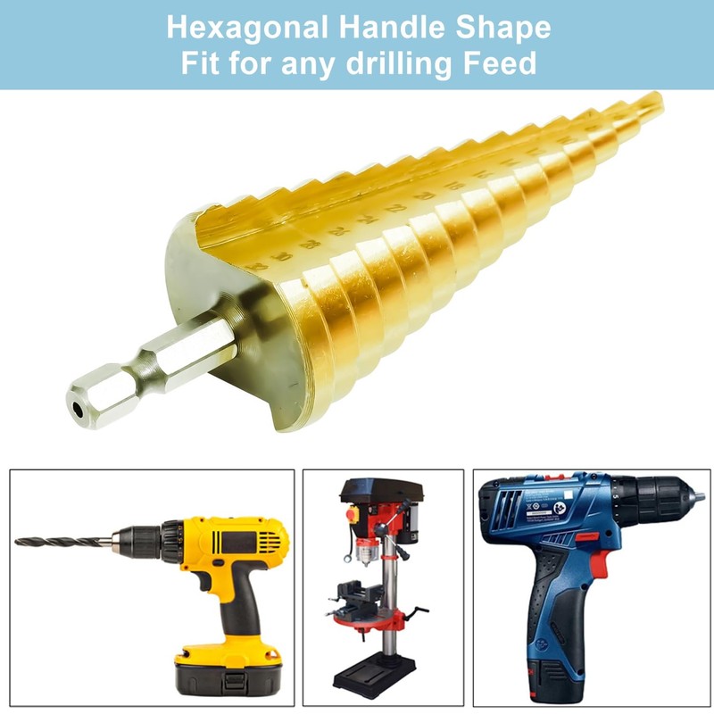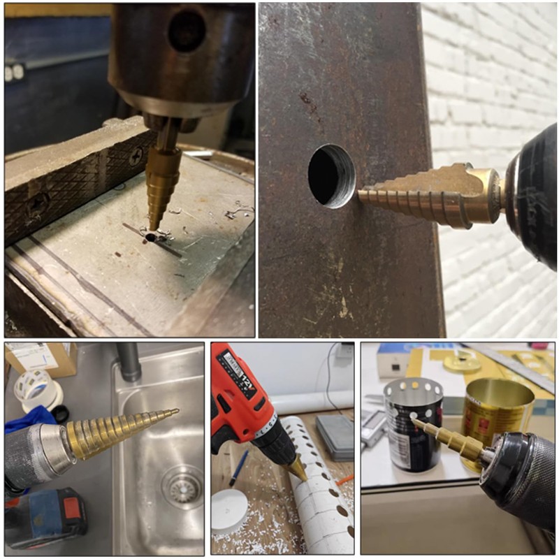 - High Quality: SS Step Bits are made of classic high-speed steel materials,with titanium coating.Provide good heat,wear and chip resistance,easy to drill and precise holes.The step drill bits are perfect for you to DIY.