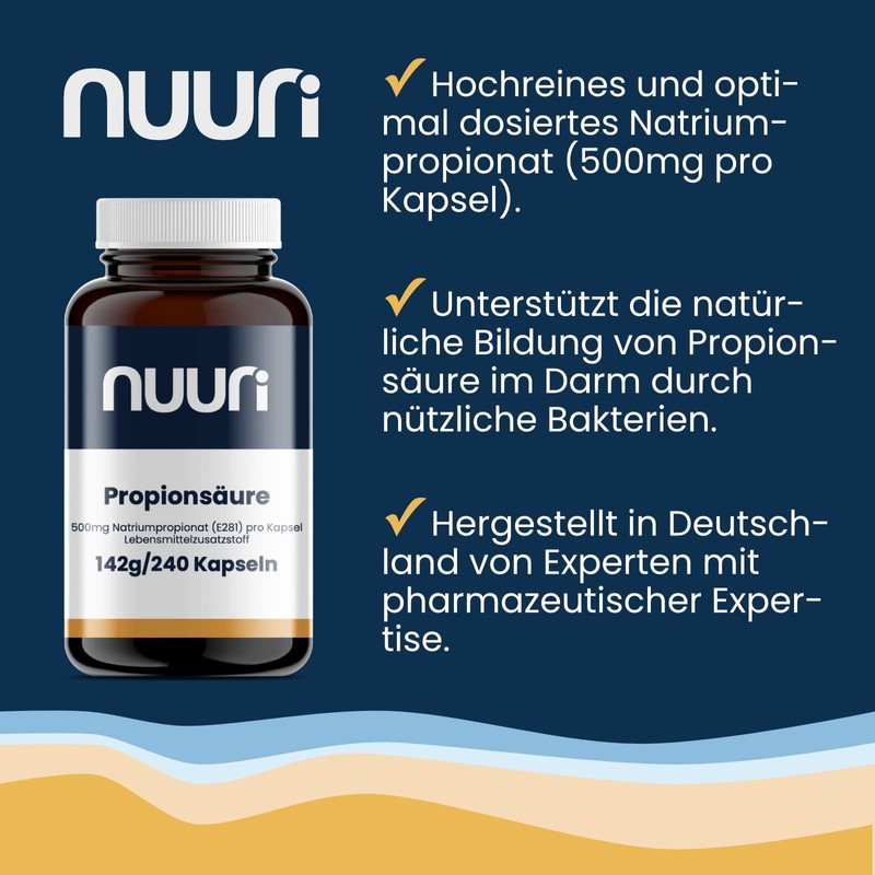 nuuri Propionic Acid 240 Capsules - 500mg Pure Sodium Propionate - Short Chain Fatty Acids