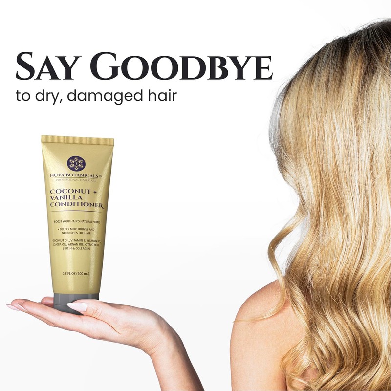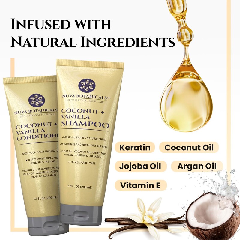 Nuva Botanicals Coconut Shampoo and Conditioner, Vanilla Shampoo and Conditioner with Biotin and Collagen- Moisturizing Shampoo and Conditioner Set with Jojoba Oil, Argan Oil and Vitamin E(6.8oz each)