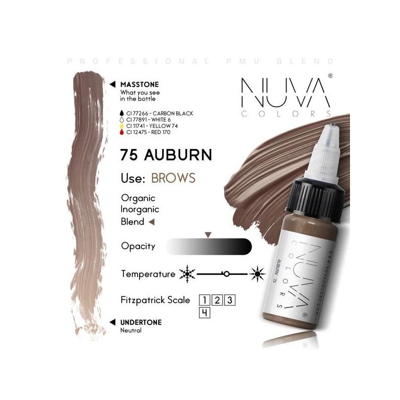 Nuva Colors Eyebrow Pigment - Eyebrow Makeup, Heal True to Tone, High Retention, Elevate Your Game with Premium, Safety, and Stunning Results (Auburn, 1/2 oz)