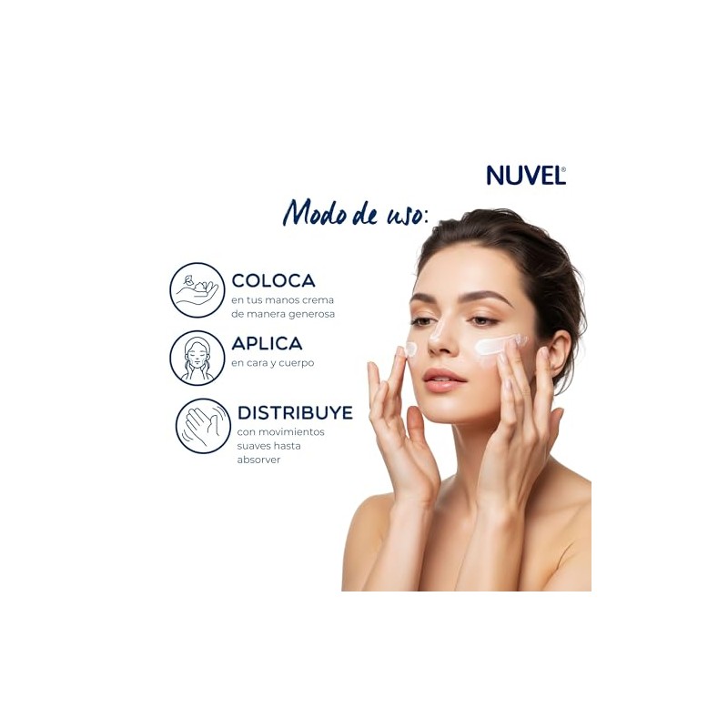 Nuvel Crema Corporal e Hidratante Facial con Miel y Avena | Nutrición Profunda para Piel Normal a Seca | 750 ml NUVEL – ¡Enamórate de ti y de tu piel todos los días! Disfruta de una rutina de cuidado completa con la crema hidratante corporal y facial Nuvel, formulada con miel y avena, dos ingredientes naturales conocidos por sus propiedades emolientes, calmantes e hidratantes. Esta crema es perfecta para piel normal a seca, ayudando a restaurar la elasticidad, mejorar la textura y aportar una hidratación duradera desde la primera aplicación. Su textura cremosa y ligera se absorbe rápidamente, sin dejar sensación grasosa, por lo que puedes usarla como crema corporal diaria, hidratante facial o incluso como parte de tu rutina después del baño, exfoliación o exposición solar. Gracias a la miel, que aporta una hidratación profunda, y la avena, que calma y protege la piel, esta fórmula proporciona un cuidado completo para rostro y cuerpo, dejando una sensación de suavidad, frescura y confort que dura todo el día. 🌿 Beneficios destacados: ✅ Crema hidratante facial y corporal, ideal para piel seca, normal o con zonas ásperas 🍯 Enriquecida con miel y avena, que nutren y regeneran la piel naturalmente ✨ Ayuda a mejorar la textura y luminosidad, actuando también como crema aclarante corporal 💧 Absorción rápida y sin residuos, perfecta para uso diario 🌸 Ideal para complementar rutinas con exfoliante corporal o limpieza facial Ya sea que busques una crema hidratante para piel grasa o seca, una crema nutritiva para después del sol o una opción que combine cuidado corporal y facial en un solo producto, Nuvel es tu aliada perfecta. Haz de cada aplicación un momento de amor propio. Con Nuvel, tu piel luce más suave, radiante y visiblemente saludable todos los días.