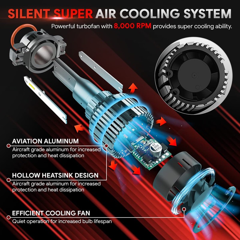 - Diseño silencioso de alto rendimiento con concentración y brillo ajustables: 8000 revoluciones por minuto. La alta velocidad pero se mantiene silencioso ofrece una disipación de calor realmente eficaz. El diseño de largo alcance te ofrece una experiencia de conducción segura.