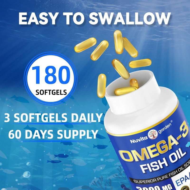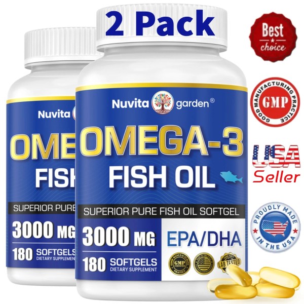 Nuvitagarden 2 Pack Triple Strength Omega 3 Fish Oil 3000 mg,1200mg Omega-3 Fatty Acids,360ct