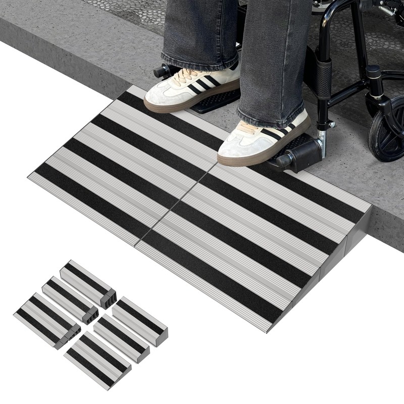 - Multiple Size Options for Versatile Use: Nuvium wheelchair ramp for doorways offers 4 height options: 1", 2", 3", and 4". It can be freely assembled and disassembled to adapt to various step heights and widths. Nuvium curb ramp can extend up to 31.5" wide or be separated for narrower use at 15.75". It ensures a smooth transition for doorways, protecting thresholds while enabling safe and easy access for wheelchairs, scooters, and other equipment.