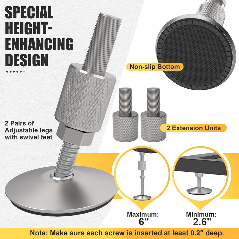 - Portable and Adjustable Entry Ramp: This 22" angled entry ramp has independently adjustable legs with swivel feet. For higher ramp needs, we have added a booster screw to each foot, allowing height adjustments between 2.6" and 6"