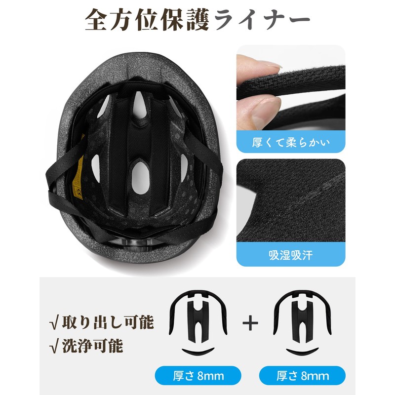 - (2 sets of 3D all-round protection/shock absorbing cushions) The interior shock absorbing liner absorbs large impacts, and protects children's heads with its softness. Unlike some other liners, our helmet shock absorbing liners come with two 8mm sets including the front head, back head, side head and top of the head. The porous material has good sweat absorption performance, and it can be removed and washed, and it can be easily treated with sweat or bacteria. It is also easy to maintain your helmet