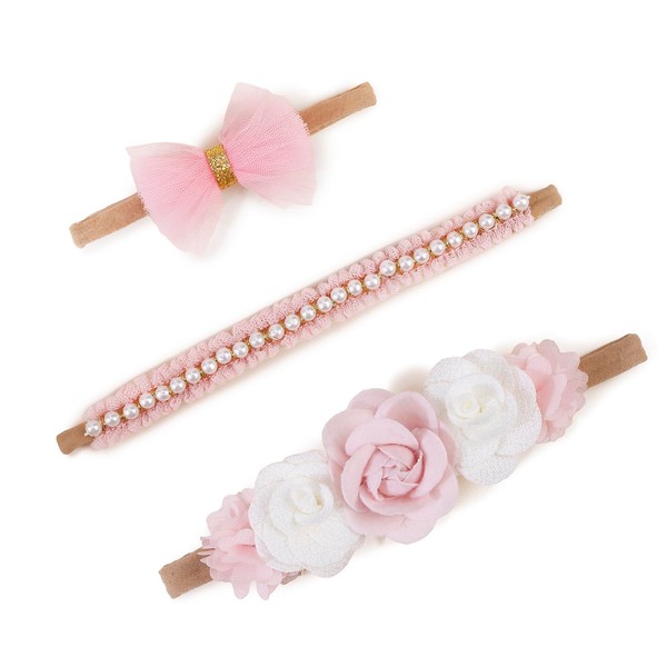 NUWAJP Baby Girl Headbands and Bows, 3 Pcs Soft Flower Nylon Elastic Hair Bands Headband Bow Cute Hair Accessories for Infant Toddler