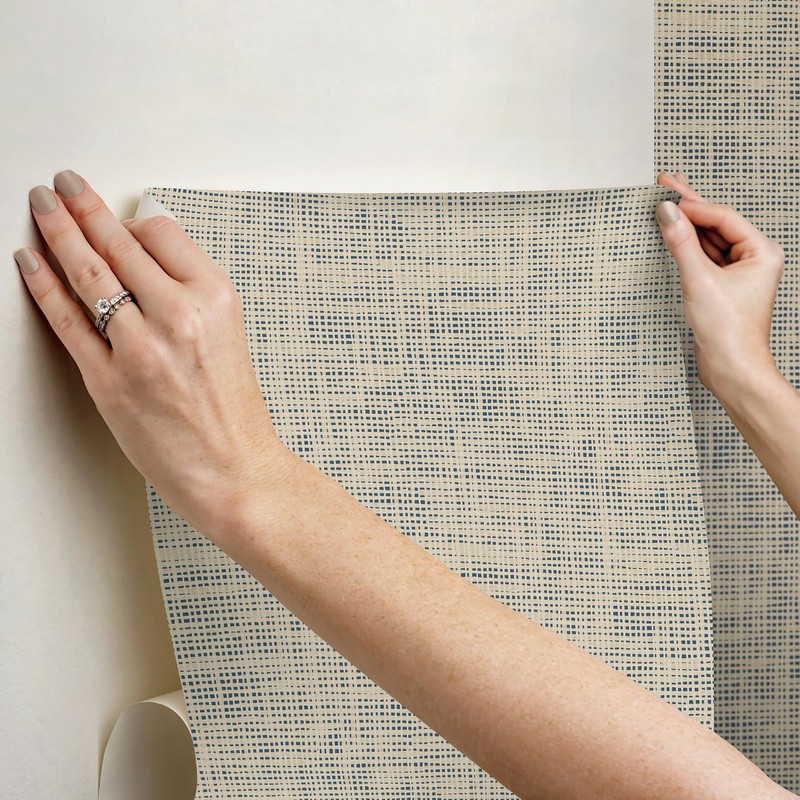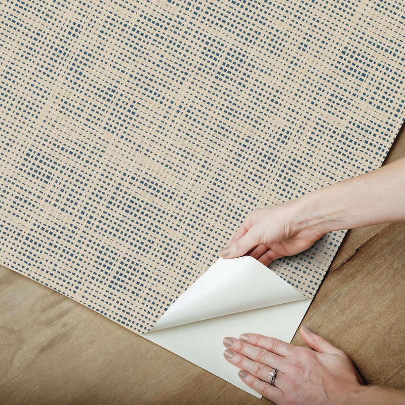 • Blue faux linen peel and stick NuWallpaper by WallPops