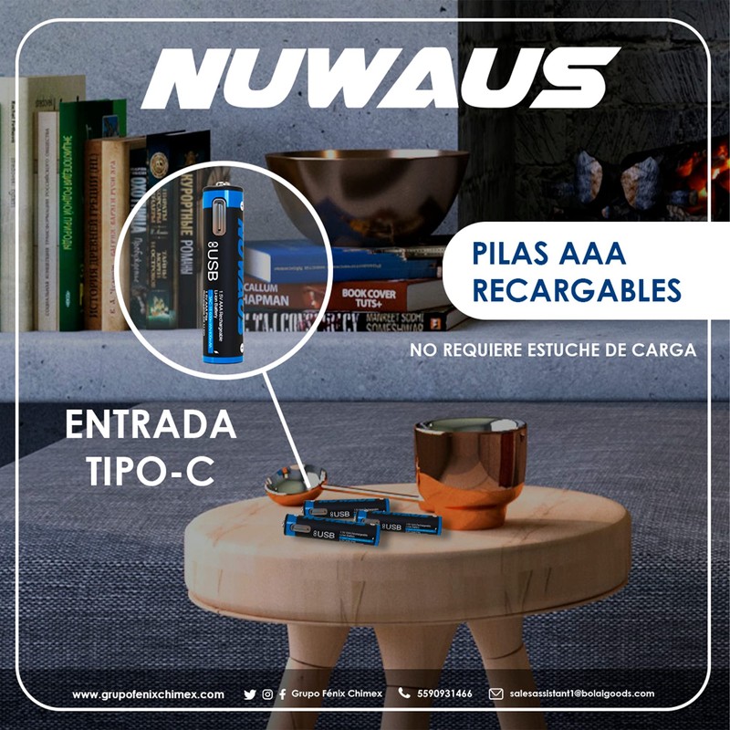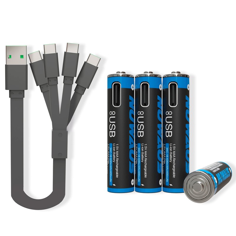 - Paquete con 4 Baterías AA recargables de 1,5 V con Carga Rápida vía cables tipo C. Las pilas cuentan con una capacidad de energía de 2200 mWh y una capacidad de carga de 1460 mAh.