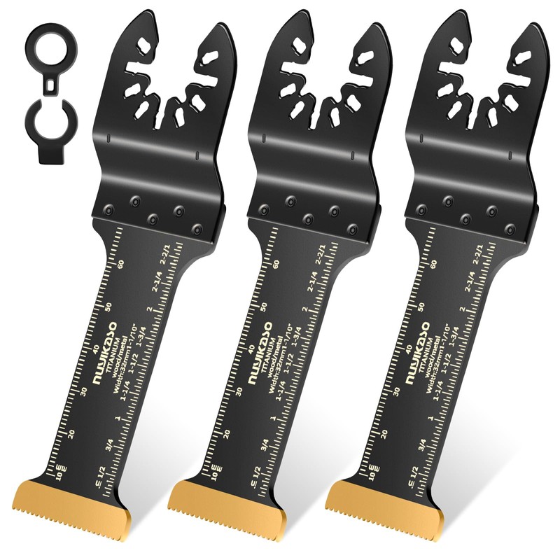 Nuyikaso 3 Pack Titanium Multi Tool Blades Extra-Long Reach Oscillating Saw Blades Multitool Accessories Kit for Wood Metal Screws Plastic Compatible with Fein Multimaster Makita DeWalt Bosch