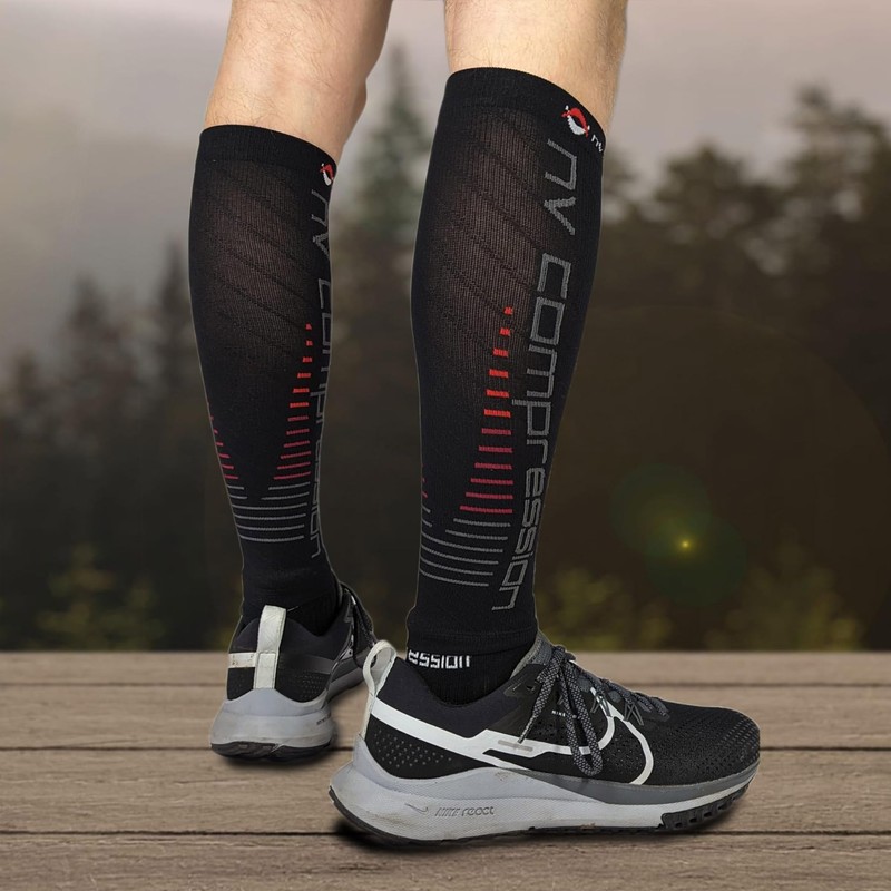 BENEFITS:The graduated compression (from the ankle to above the calf) aids the flow of oxygen to the muscles which improves performance and reduces fatigue. Each sleeve behaves like a second layer of muscle, gently squeezing stretched vein walls. This built-in feature helps fight the force of gravity and circulates blood back up to the heart more efficiently.