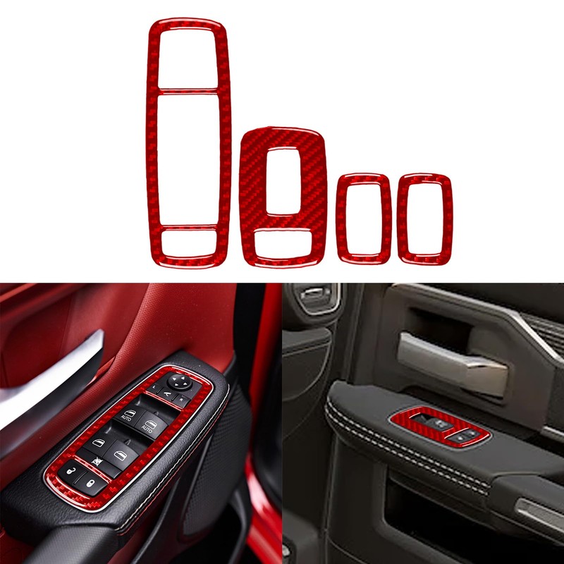 NVCNX Real Premium Carbon Fiber Compatible with Dodge RAM 1500/2500/3500 2019 2020 2021 2022 2023 2024 Window Switch Panel Cover Interior Trim Accessories Sticker Decal Red - for Crew/Quad Cab