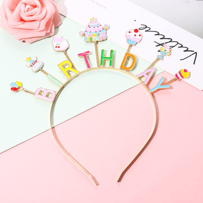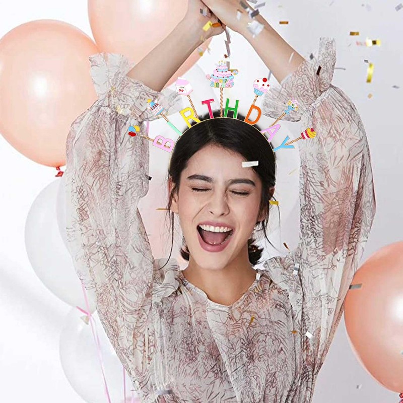 - ღ Accesorios para el cabello de cumpleaños: hora de fiestas con el exquisito tocado de niña de cumpleaños. Estas bonitas diademas de cumpleaños son perfectas para fiestas de cumpleaños, accesorios de fotografía, celebración de cumpleaños, aniversario, club nocturno, bodas, playa de verano, día festivo, festividades, etc. Estas diademas para tartas de cumpleaños son atrevidas, divertidas y coloridas para añadir un toque extra a tu atuendo, que seguramente te permitirá ser el protagonista de la fiesta