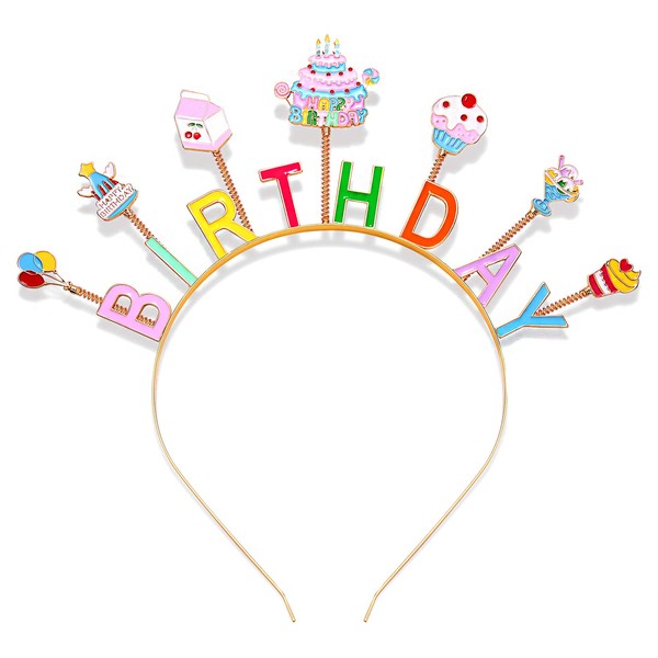 - ღ Diademas de cumpleaños para niña: Deja que todo el mundo sepa que eres "Reina de cumpleaños" hoy con esta maravillosa diadema de feliz cumpleaños. Cuenta con un aro dorado brillante con las palabras "Happy Birthday", "Birthday", "Birthday Girl", "Birthday Queen" deletreadas en coloridas letras esmaltadas, y decoración de muchos encantos adorables, como pasteles, dulces, helados, estrellas de arena, velas, globos, etc. Esta tiara de cumpleaños puede añadir un bonito toque a las celebraciones y garantiza que la niña de cumpleaños destaque en su día especial