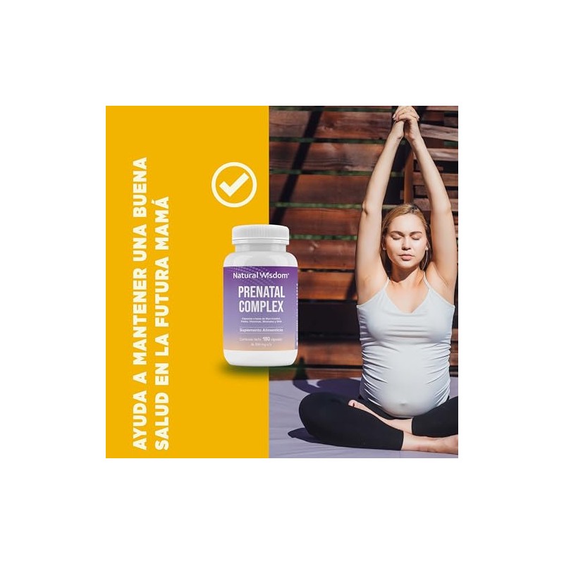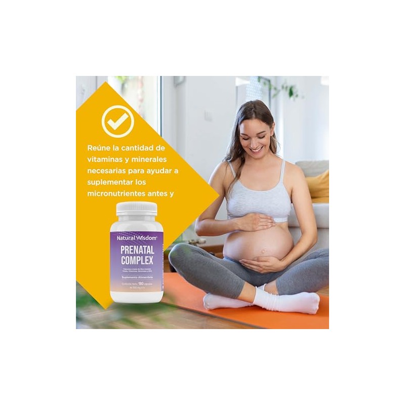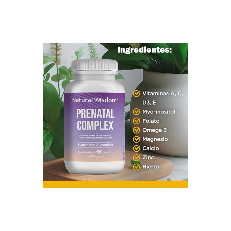 NW Prenatal Complex 180 Capsulas Myo Inositol Magnesio Zinc Vitamina D, A, C, Omega 3 y Folato | Ingredientes Naturales | Gluten Free Soya Free Lacteos Free Vegan | Natural Wisdom