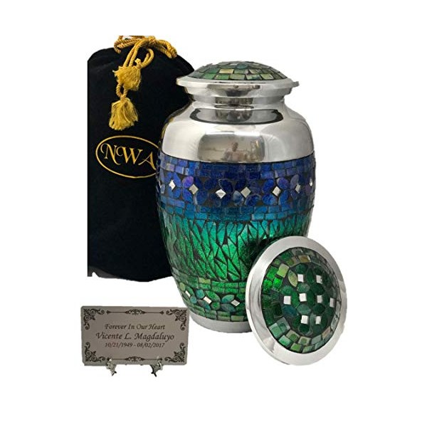 NWA Customized Large Blue Mosaic Cremation Urn with Bag for Human Ashes