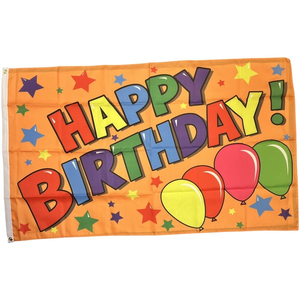 NWFlags Happy Birthday Orange Flag 5ft x 3ft 75d Premium Polyester Suitable F...