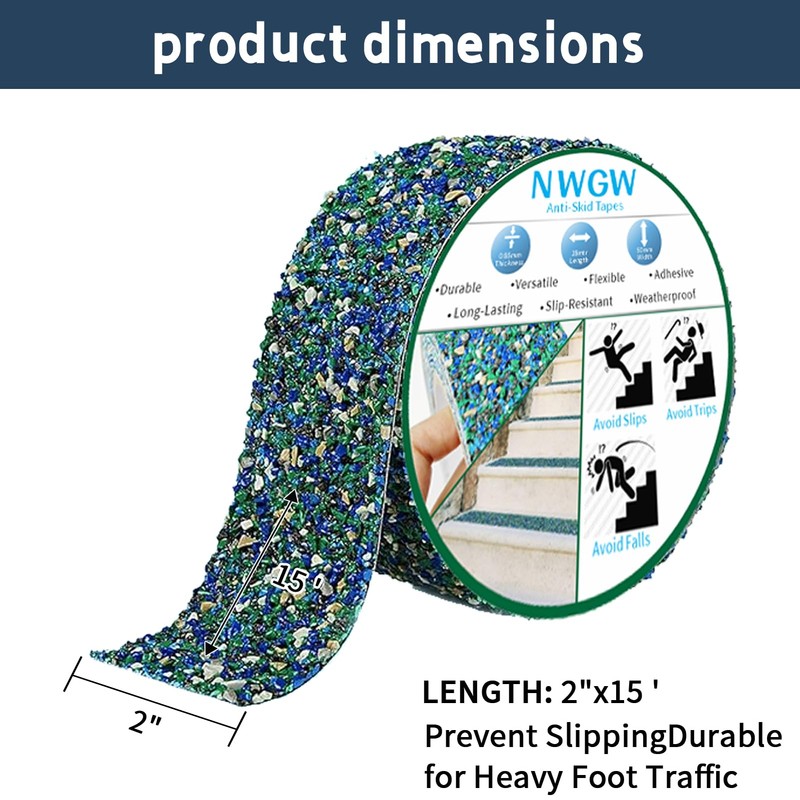 - Ultra-Safe Anti-Slip Protection for High-Traffic Areas: NWGW Anti-Slip Tape is engineered with high-density rubber and textured grip granules to deliver unmatched traction in wet or dry conditions. Perfect for stair treads, bathroom floors, pool decks, boat decks, and outdoor trails, this waterproof anti-slip tape enhances slip resistance while maintaining durability in extreme weather