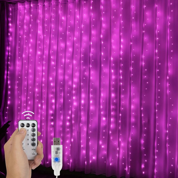 NWLIGHT curtain lights are easy to hang with included command and self-adhesive hooks, making them perfect as curtain lights for bedroom walls or curtain fairy lights for living spaces. With 8 lighting modes, adjustable brightness, a timer function, and memory feature, these smart curtain lights are ideal for everyday use or special occasions. Whether you're using them as fairy lights curtain, curtain string lights, or led curtain lights for bedroom, their versatility shines through in various settings. Measuring 9.8 x 9.8 ft, these LED curtain lights are both energy-efficient and IP65 waterproof, making them suitable as outdoor curtain lights or twinkle lights curtain for your home. The curtain lights outdoor feature bright, eco-friendly lighting, perfect for events like holidays or weddings. While the lights themselves are waterproof, please note the USB port should remain dry. Whether used as curtain lights for backdrop or fairy curtain lights, their design adds charm to any space. These fairy lights are USB-powered, compatible with multiple power sources, and designed for safe, long-term use without overheating. Their silver wire can be trimmed for a custom fit, offering flexibility for bedrooms, dorms, or as outdoor string lights. For added portability, you can choose curtain lights battery-operated or fairy lights battery-operated versions. Whether you want curtain led lights, fairy lights with remote, or string lights for bedroom, these fairy lights plug-in options ensure reliable and beautiful lighting.