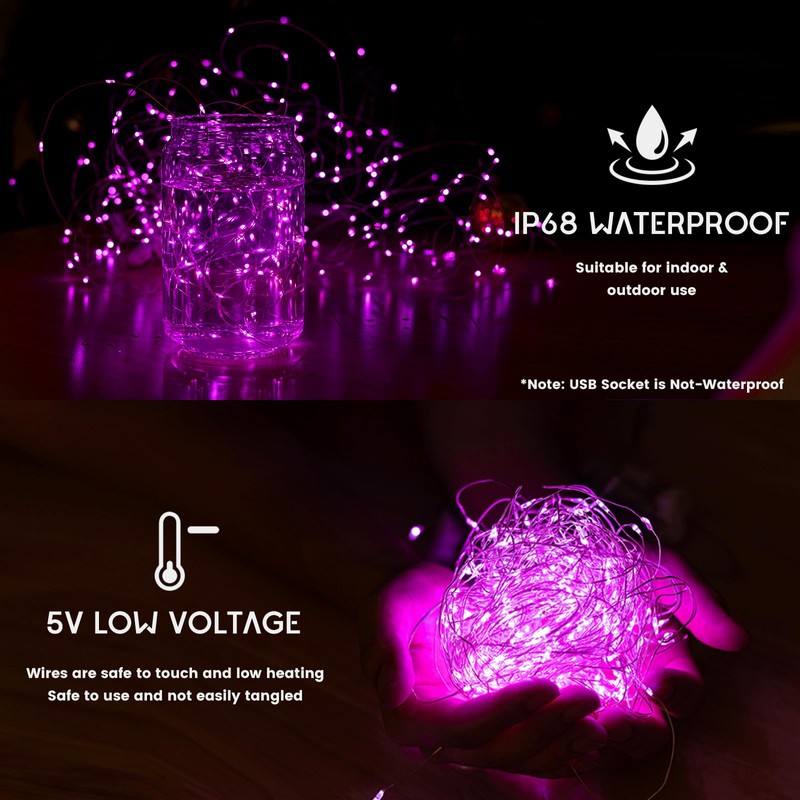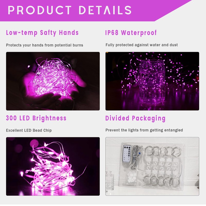 • EASY TO UNRAVEL AND HANG - NWLIGHT curtain lights come with hanging command hooks for each light strand, and also provide 17 self-adhesive hooks for each set of curtain fairy lights, making it easy to hang them on bedroom walls. Start by undoing the main twist ties, hang the curtain lights for bedroom on the window, and then undo the smaller twist ties around each curtain drape. This process works smoothly, making these pink fairy lights curtain ideal for any space.