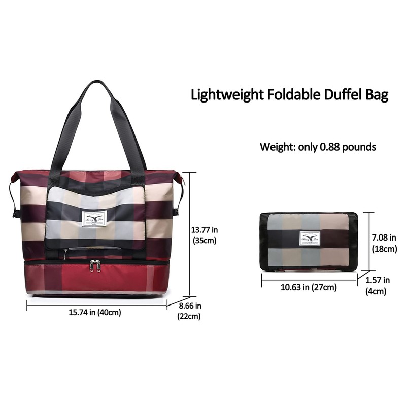 • Foldable and Waterproof Travel Bag: The new folding travel bag is made of lightweight waterproof Oxford fabric, wear-resistant and fashionable. It has excellent waterproof effect in rainy and wet conditions. You can fold it up, that just like a handbag. Greatly save space and easy to carry on your flight. Unfolding size:(L*W*H) 15.74 inch*8.66 inch*13.77 inch, folding size:(L*W*H) 10.63 inch*1.57 inch*7.08 inch