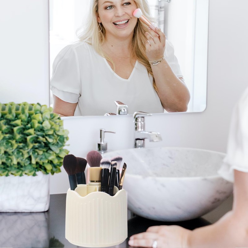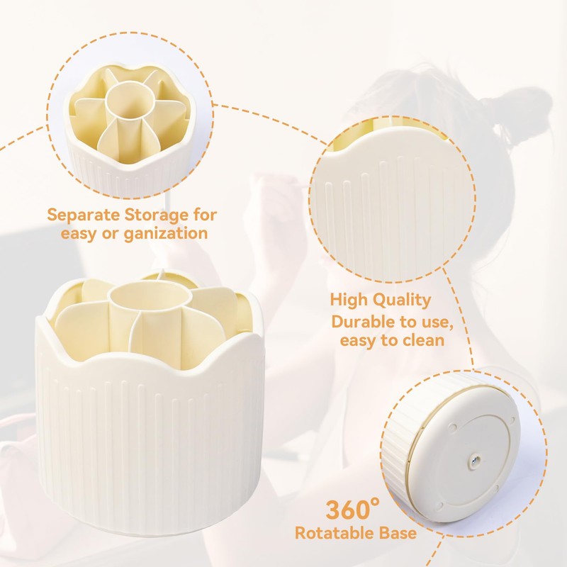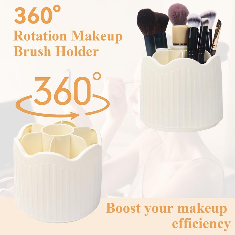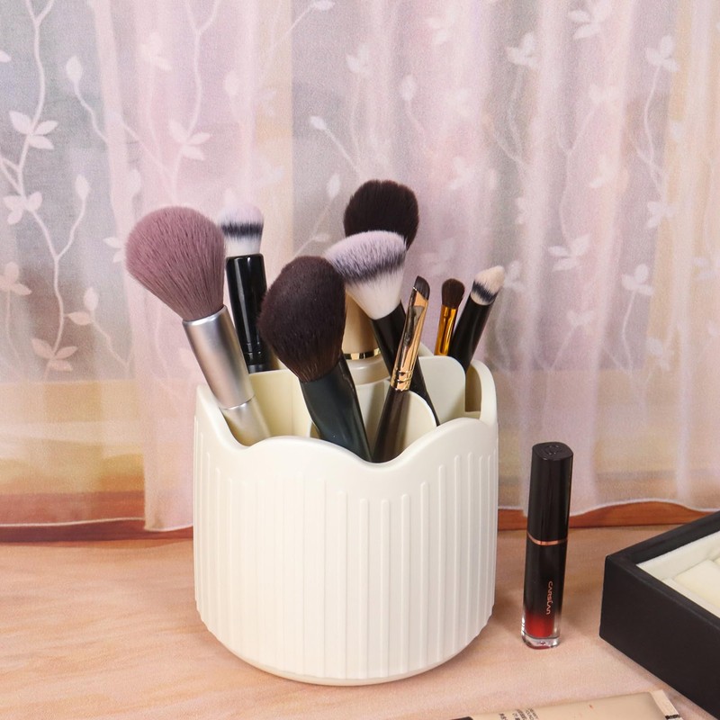 Nwvuop Makeup Brush Holder 360° Rotating Make up Brush Organiser Storage with Compartments, Lipstick Holder Makeup Organiser For Cosmetics(Beige)