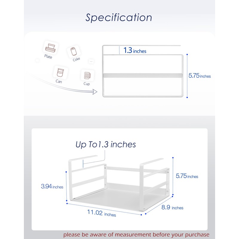 • Multi-Functional Organizer: This under-storage shelf is versatile and can be used as a mobile drawer organizer, hanging under cabinets to store cans, spices, mugs, jams, seasonings, and more. It can also be placed in a cabinet as an expanded organizer to store foods, bottles, snacks, baking supplies, and so on. It helps you organize your space and access your belongings easily.