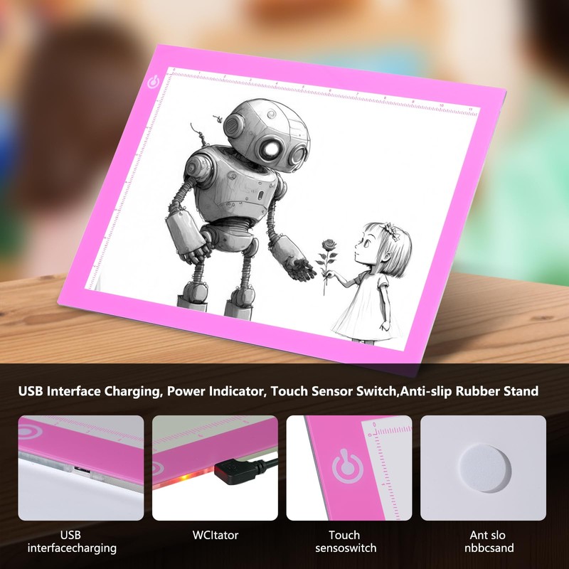 NXENTC Light Pad Drawing A4 Tracing Light Table NXENTC LED Copy Board Ultra-Thin Display Pad Brightness Adjustable Stencil Artist Art Tracing Tatto Table Pink