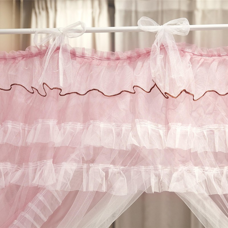 - 4:Every girl has a princess dream. This Ruffle Lace Up double Bed Canopy Curtain Double Layer makes the girl's room full of romance and fulfilled all your fantasies about the princess.It is suitable for birthdays, anniversaries, Christmas, mother's day, etc.