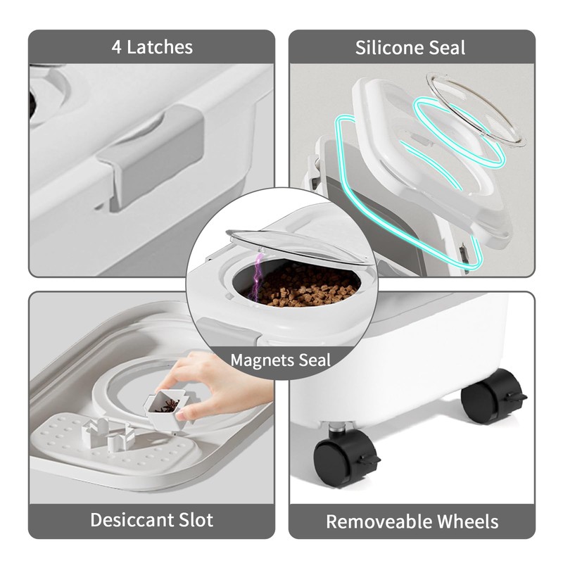 - SUPERIOR SEALING: NXIZOLI airtight dog food storage container uses silicone ring sealing to keep pet food fresh. The slot can store desiccant, garlic, and aniseed, effectively keeping moisture away
