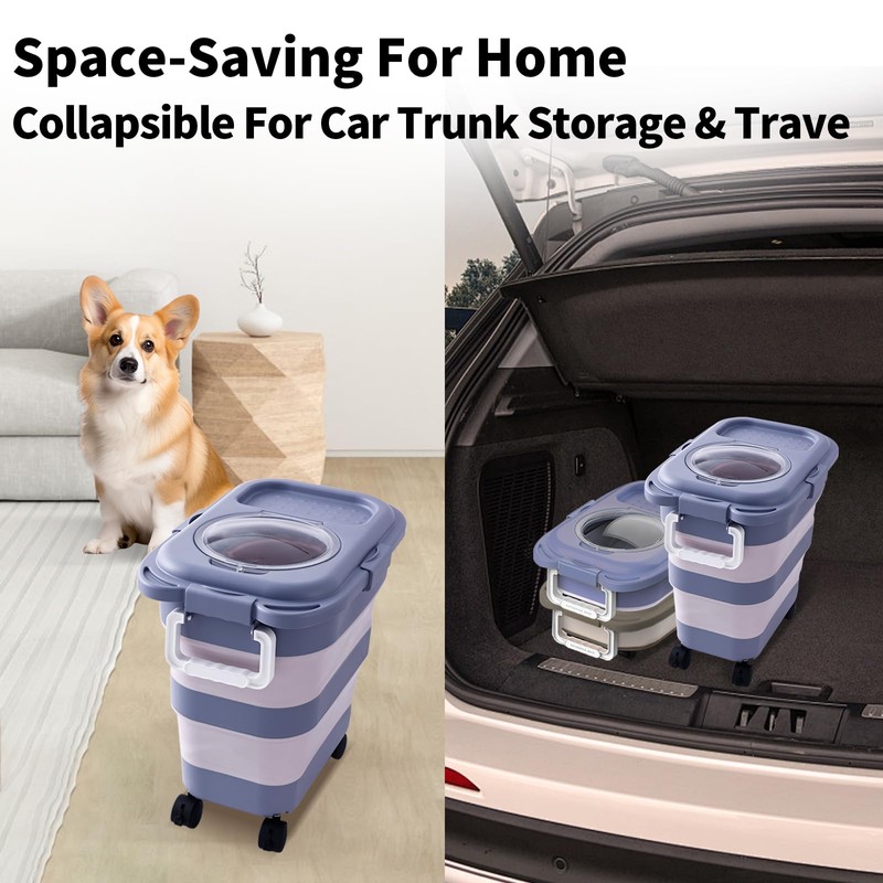 nxizoli 25 Lbs Dog Food Storage Container 2PCS, Collapsible Dog Food Container with Scoop for Pet/Dog/Cat/Bird Food,Keep Dry Food Fresh,Easy to Move(Blue & Khaki)