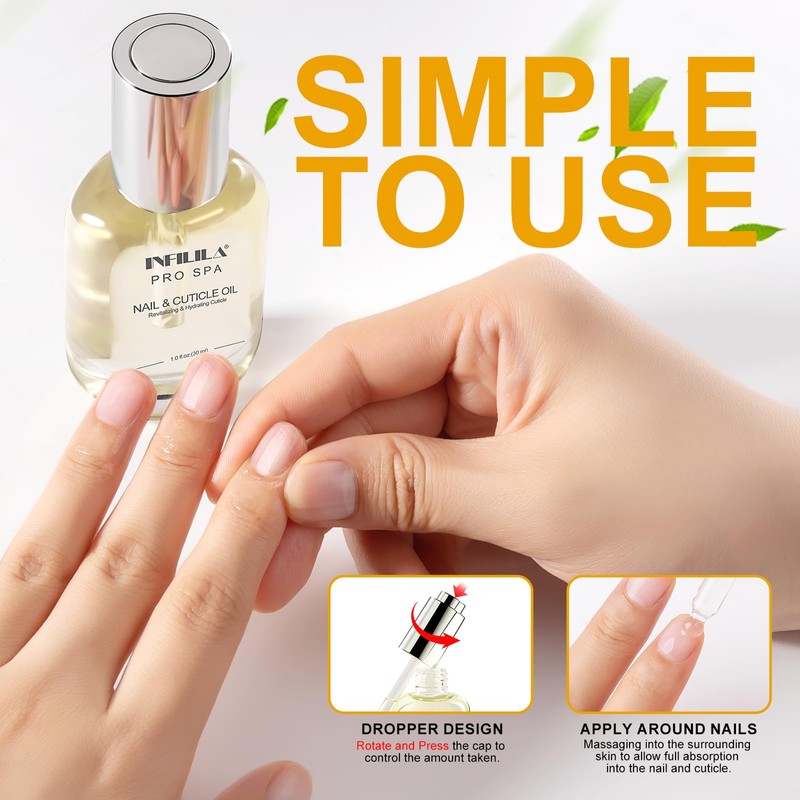 - MULTIPLE BENEFITS: This cuticle oil will not only make your nails grow stronger and make your nails less prone to breakage and damage, but you don't have to worry about doing a manicure frequently. In addition to this applying cuticle oil moisturizes the skin around your nails. This helps prevent dryness, cracking, and irritation that can cause discomfort and unsightliness.