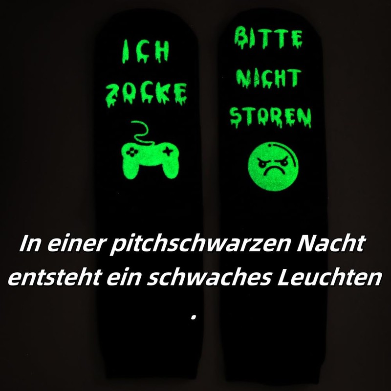 NxnChc Funny Gaming Socks with Saying "Bitte NICHT STÖREN ICH ZOCKE: Ideal Gifts for Men, Boys, Teenagers and Children for Easter, Birthday and Valentine's Day, White, Colourful, Green, Luminescent