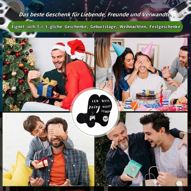 - Fun gamer gift: make someone happy. Our gaming socks are the perfect gift for all video game enthusiasts. They are original and humorous, perfect for all ages and will make a smile on any occasion.