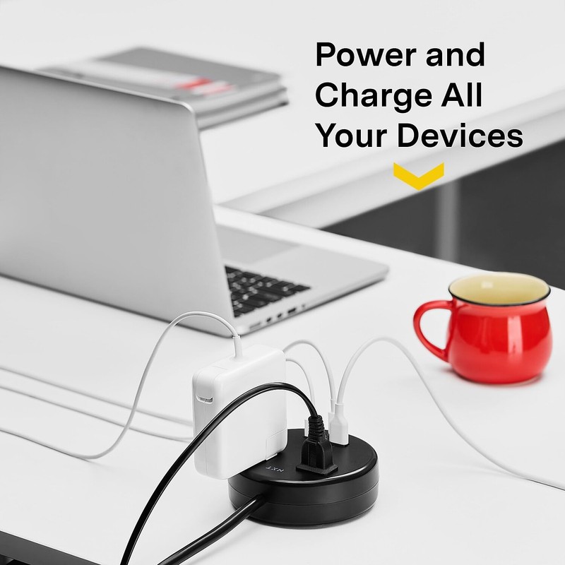 - Desktop surge protector features two grounded AC outlets, two USB Type-A ports, and one USB Type-C port for convenient powering of multiple devices such as phones, tablets, and monitors all at once