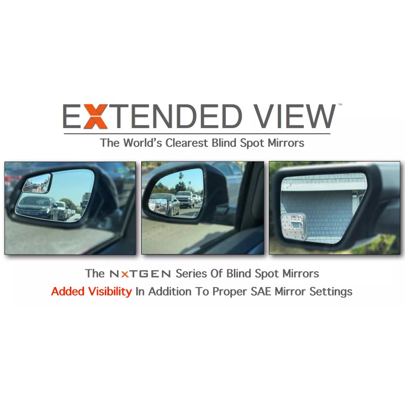 Extended View™ mirrors were designed taking into account the size, scale, curvature and image quality of commercial grade blind spot mirrors. Not just another distorted or far away looking stick-on, Extended View™ can greatly enhance visibility with unrivaled clarity. NXTGEN Automotive is a California based company that designs and creates all of our products in the USA. We engineered our Extended View™ mirrors on 9 planes of curvature to create a stick-on mirror with clarity and quality like nothing you have ever seen.