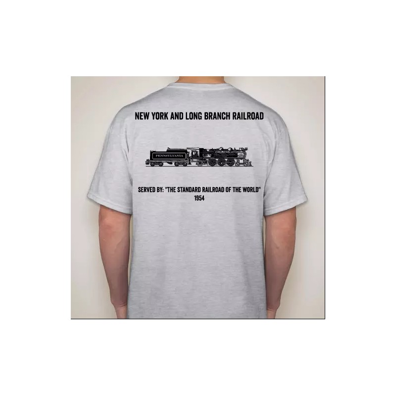 Up for Buy it now is this New York and Long Branch Railroad ,NY&LBRR PRR Pennsylvania Railroad T-Shirt 1954. This shirt features the famous K4S steam locomotive .This is a 100% cotton, pre shrunk Gildan Tee-Shirt. The size is Large.