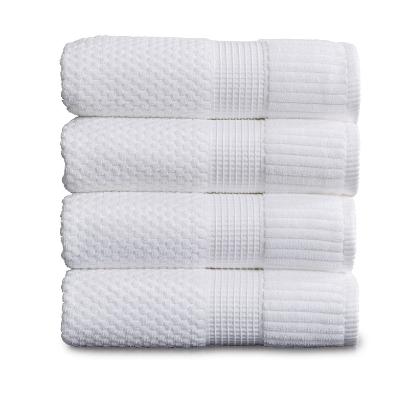 NY Loft 100% Cotton Bath Towel 4 Pack | Super Soft & Absorbent Quick-Dry Bath Towels 30" x 52" |Textured and Durable Cotton | Trinity Collection (4 Pack Bath Towel, Bright White)