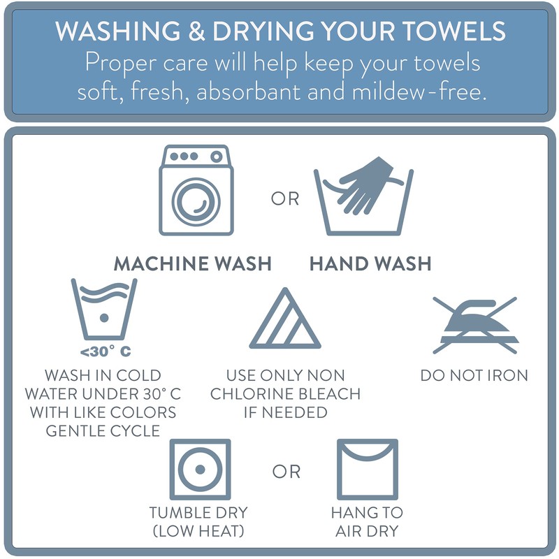 - EASY CARE : For best care to keep your towels soft, fresh, and Absorbent. Machine wash cold with like colors and tumble try on low heat or hang to air dry.