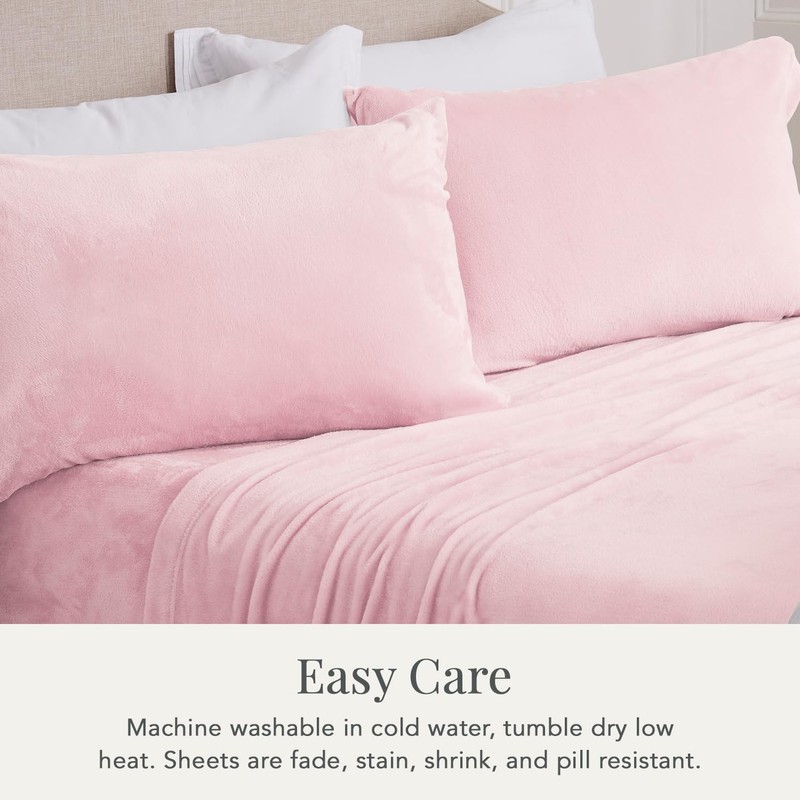 NY Loft Ultra Soft Micro Fleece Sheets Set with Extra Deep Pockets | Super Plush Polar Fleece | Velvet Plush Cozy Warmth | King - Light Pink