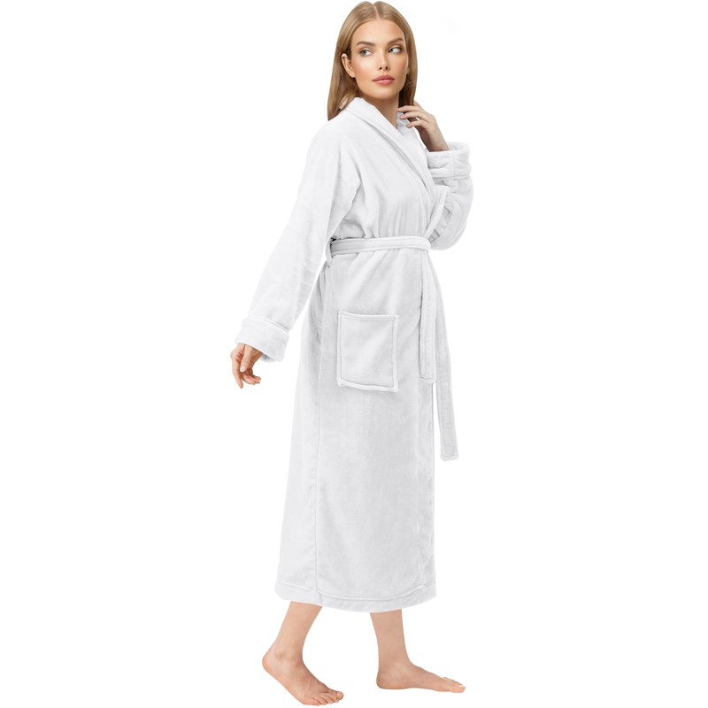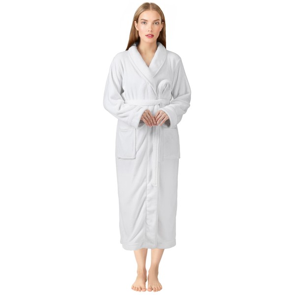 NY Threads Premium Women's Robe Plush Soft Long Bathrobe Warm Fleece Shawl Collar Spa Robe (Large, White)
