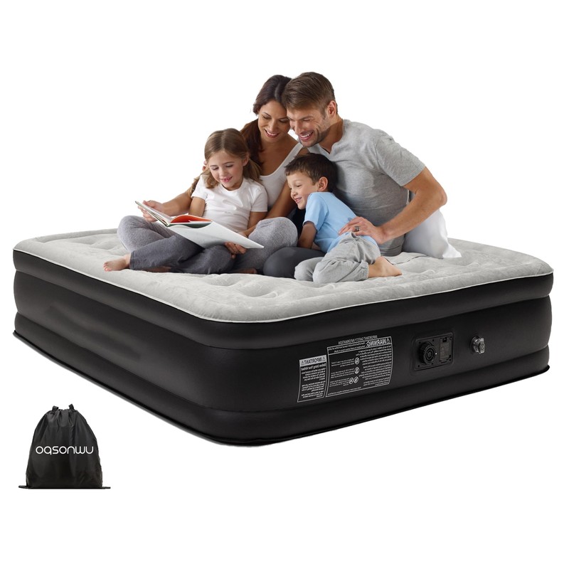 - Top configurationqueen air mattress with built in pump bring (110V) built-in pump, it only takes 3-5 minutes to easily inflate or deflate,In addition we have an additional air valve for manual outdoor inflation.We reinforced every interface to prevent the inflatable mattress queen from air leaking and collapsing during the nightProvide you with a safer and more efficient air mattress