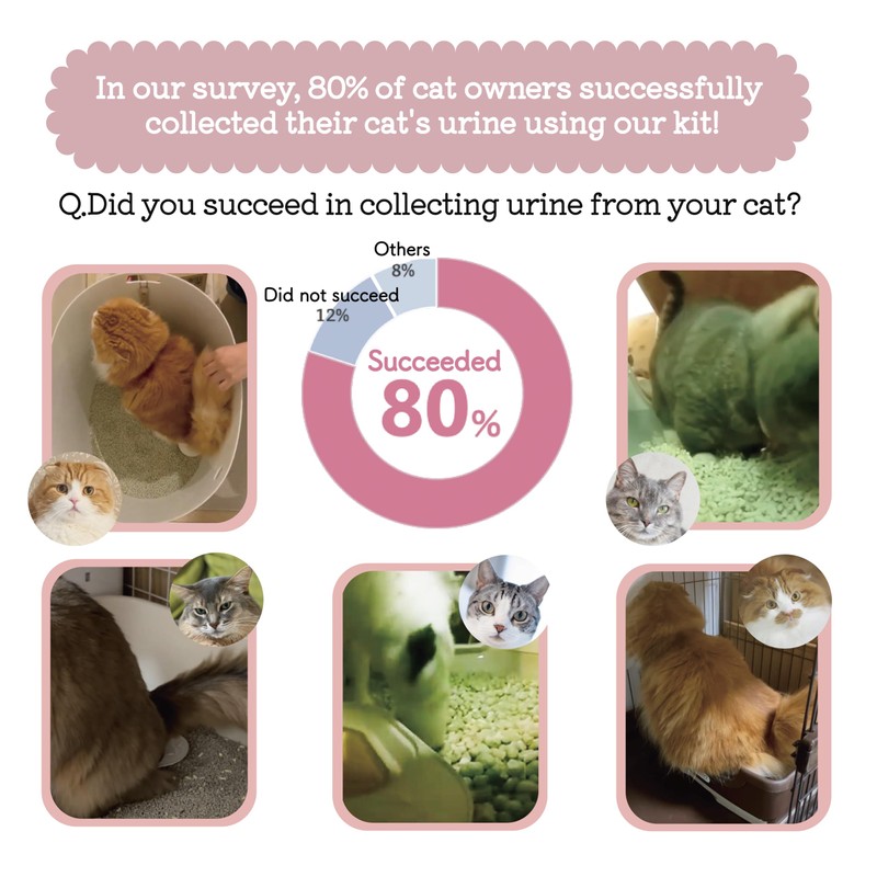 - đ±đ¶ăCONVENIENT URINE STORAGE KITă This product includes not only the test but also a urine storage kit. If you notice any abnormalities, transfer the urine to the convenient dropper bottle provided and take it to your veterinarian in a zipper bag. The urine storage bottle is a dropper type, so you can suck up the urine from the tray and transfer it to the bottle easily.