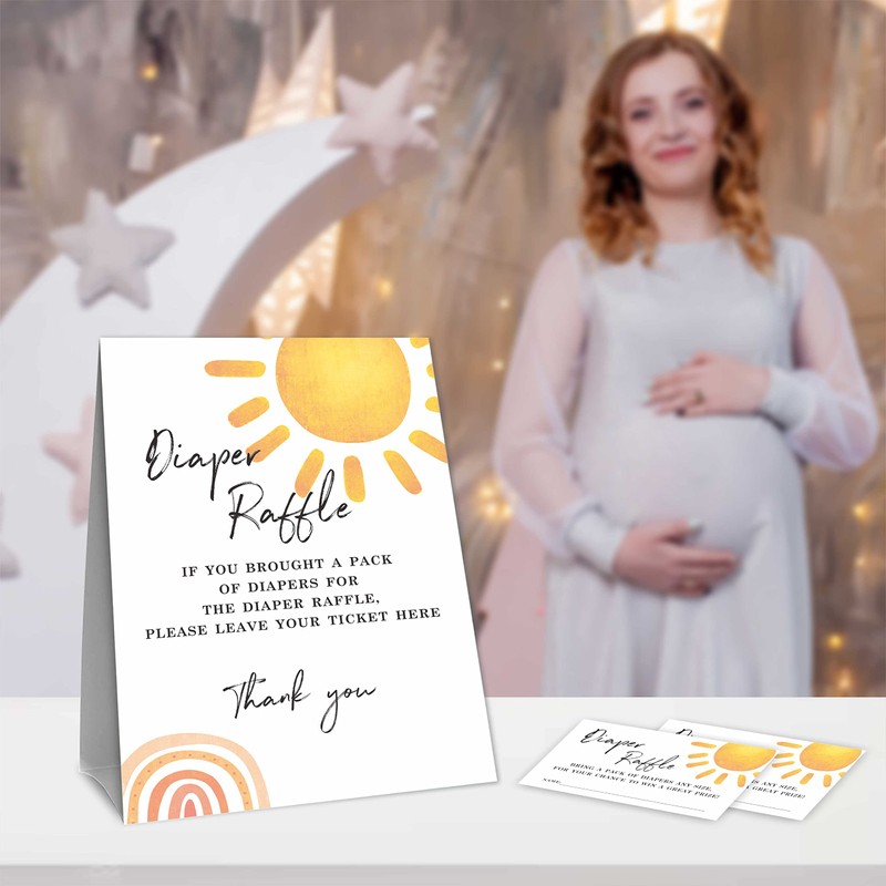 - Quantity: package included 1 Standing sign and 50 Diaper raffle tickets.