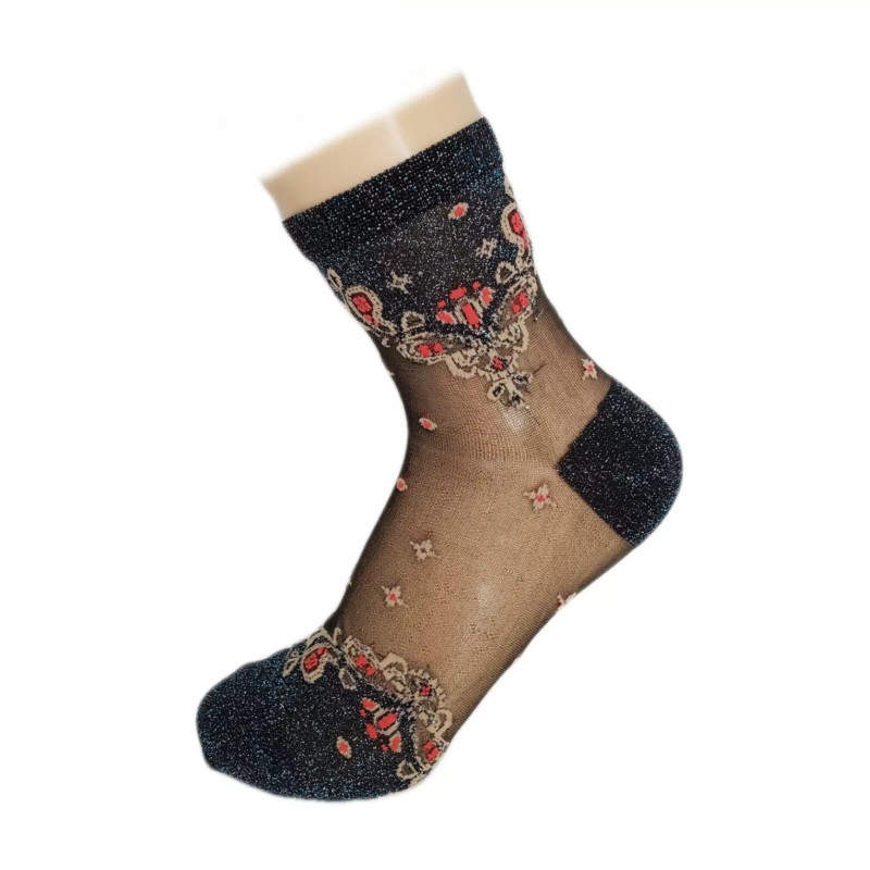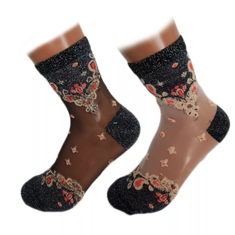 nylocks 2 Prs fancy glitter paisley transparent dress socks 4 flats Mesh Sheer nylocks