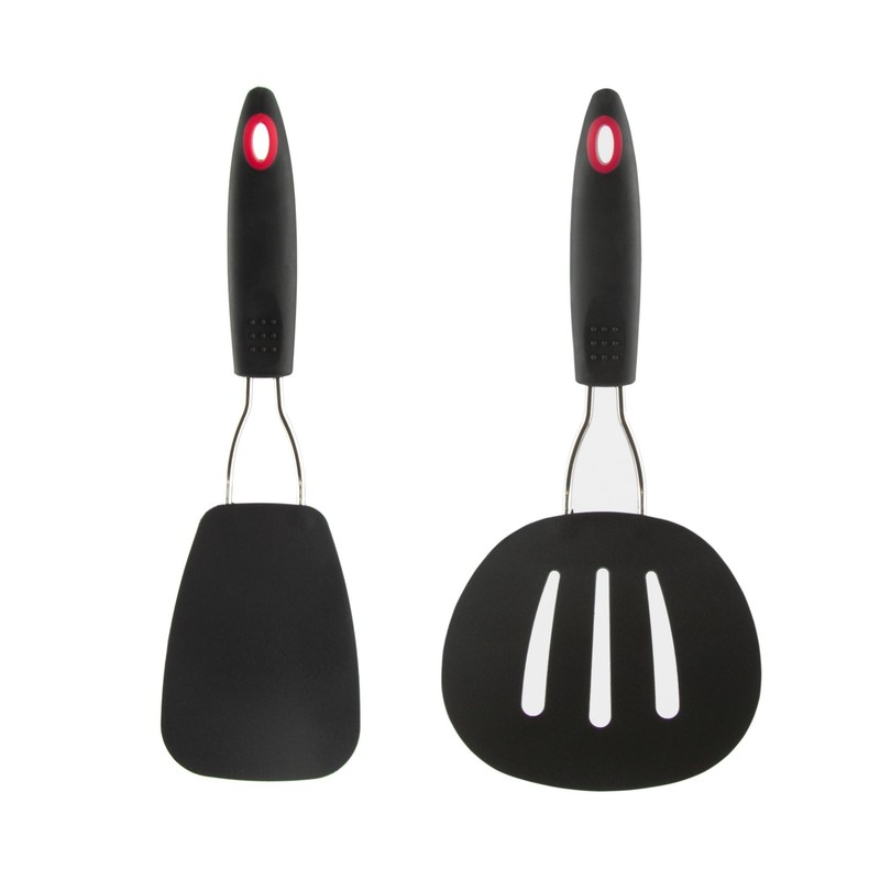 Nylon Flexible Turner and Nylon Round Slotted Turner Set in Black