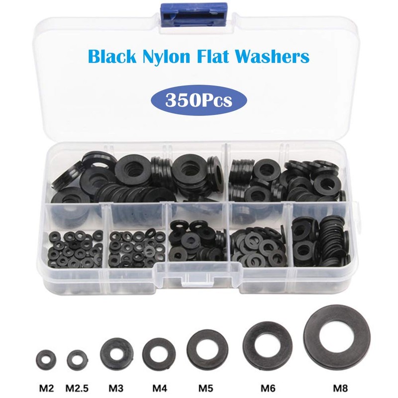 Nylon Washers Set 350pcs M2 M2.5 M3 M4 M5 M6 M8 Flat O Ring Washers Spacers Assorted Washers Gaskets for Plumbing Faucet Mechanical